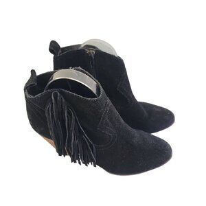 Steve Madden Black Suede Cian Fringe Western Booties Size 8.5M