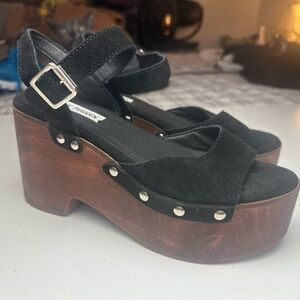 Steve Madden Black, Suede, Leather, Mindful, Chunky Platform, women’s wooden Sandals. Size 7.5