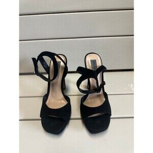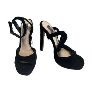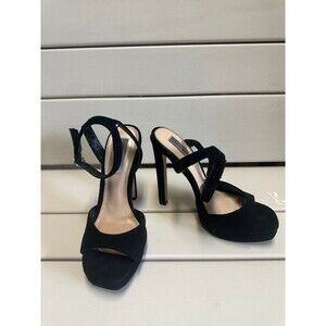 Steve Madden Black Suede Platform Open Toe Adjustable Straps Stilettos Heels 8