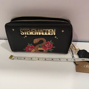 Steve Madden Black Wallet with Snake and Floral Design NWT