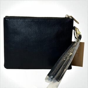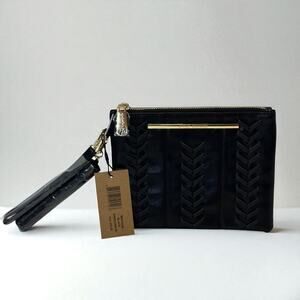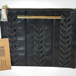 Steve Madden Black Whipstitch Wristlet Zip Pouch Boho Tassel NWT Casual Handbag