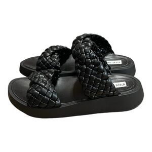Steve Madden Black Woven Hillary Slip-on Platform Chunky Sandals Size 10M
