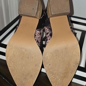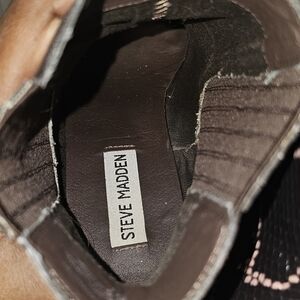 Steve Madden Black and Pink Ankle Booties with a Sleek Snake Print Design.