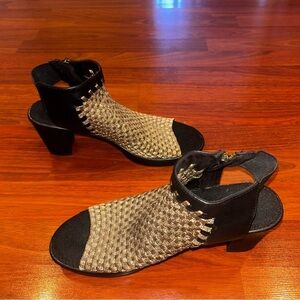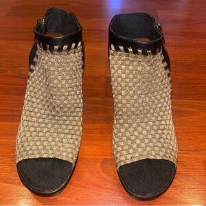 Steven By Steve Madden “Encino” Gold Woven Textile Peep Toe Heels Sz 9.5
