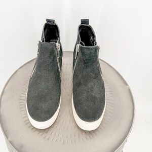Step into style with these Steve Madden ankle booties, featuring a sleek black and white design. Crafted for comfort and ease, they boast elastic side panels and a minimalist silhouette. Perfect for elevating any casual or semi-formal ensemble.