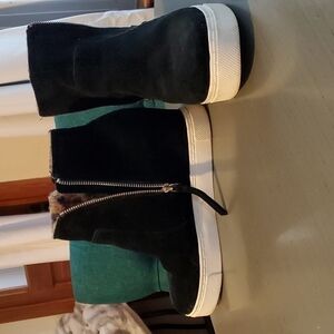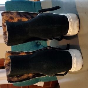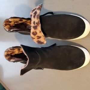 Steve Madden- Black leather Suede Saidi Animal print Wedge Boots Size 10 M