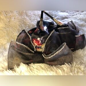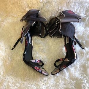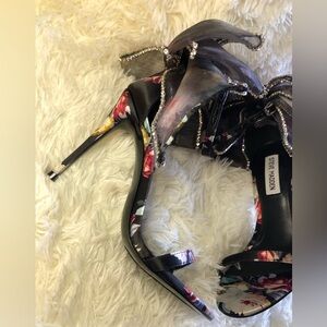 Steve Madden Black w/ Floral Accents and Bow NWOT size 6.5 Benni-R Satin Sandals