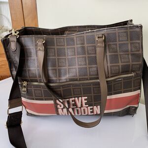 Steve Madden Blivia Logo Tote Bag Brown Large 14X12X6