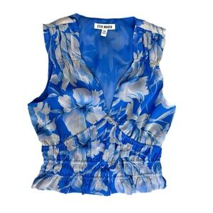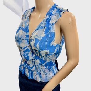 Steve Madden Blue Floral Smocked Crop Top Sleeveless Ruched Blouse Size XS