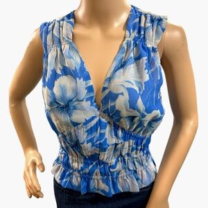 Steve Madden Blue Floral Smocked Crop Top Sleeveless Ruched Blouse Size XS
