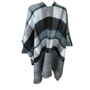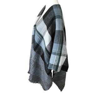 Steve Madden Blue Plaid Cozy Soft Preppy Country Western Shawl Poncho One Size