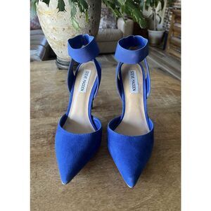Steve Madden Blue Suede Elastic Ankle Strap Pointed Toe Stiletto Heels Size