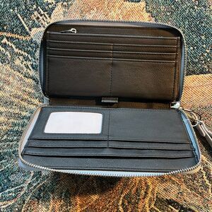 Steve Madden Blue Textured Leather Zip Around Wallet with Gold Hardware NWT