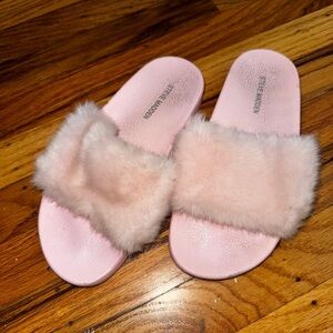 Chic and cozy Steve Madden slippers. Soft blush fur adds elegance. Ideal for relaxed days.