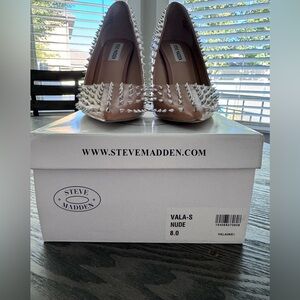 Chic blush pink heels adorned with striking silver spikes. Ideal for making a statement.