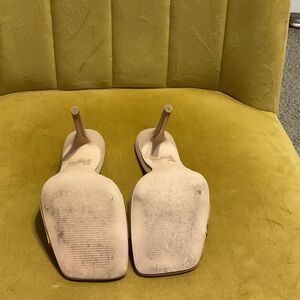 Elegant Steve Madden heels with a blush base and clear straps. Perfect for any occasion.