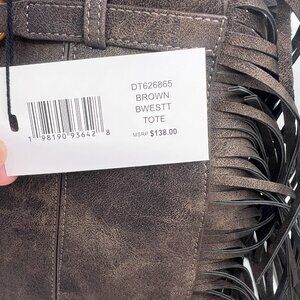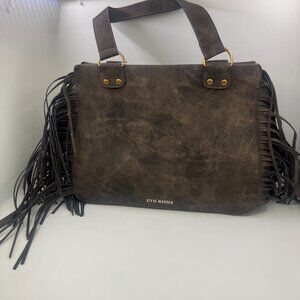Steve Madden Boho Fringe Shoulder Bag Western Style Tote Purse NWT Brown Tan