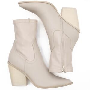 Pointed-toe sock booties with inner ankle zipper closure