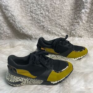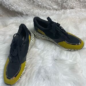 Steve Madden Boomer lace up wedge sneakers fabric Black & mustard yellow SZ9M