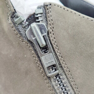 This is one sexy fall heel. Zips up the side for easy entry and exit. Smooth leather (we think these are real suede - but cannot confirm).