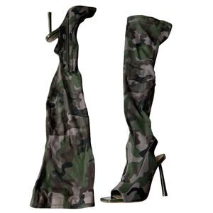 Steve Madden Boots Beverley Camouflage Mesh Green Over Knee Boot Women's Size 6