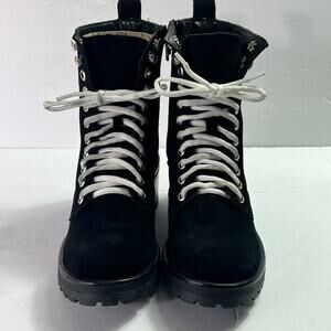 Steve Madden Boots Bootie Womens Sz 5.5 Black Gloat Suede Zip Laces Ankle