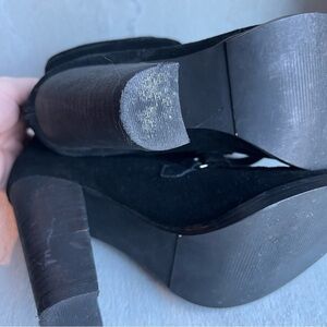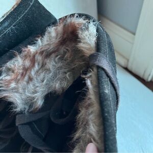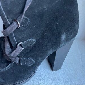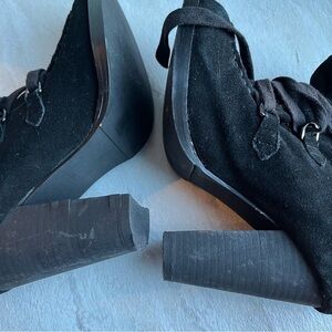 Steve Madden Dash Black Suede Leather Boots Bootie, faux fur lined, lace up front, with block heel