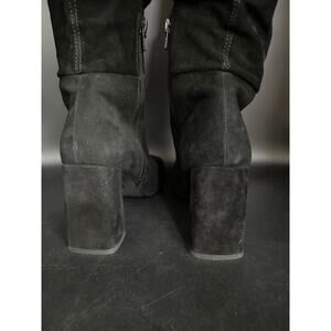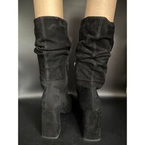 Steve Madden Boots Women 10 Malaga Mid Calf Black Suede Heeled Zip Almond Toe