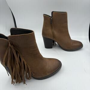 Steve Madden Boots Womens 8.5 Woodstock Brown Leather Fringe Bootie Block Heel C