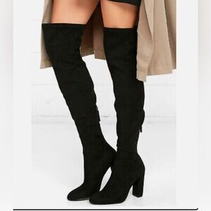 Worn one time. Over the knee 4 inches heels black suede black boots from Steve Madden.