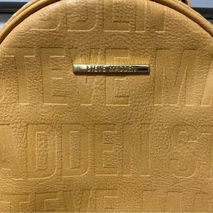 Steve Madden Bowling Backpack Purse Mustard Yellow Leather