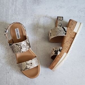 Steve Madden Brenda Cork Wedge Platform Sandals Snakeskin Cork