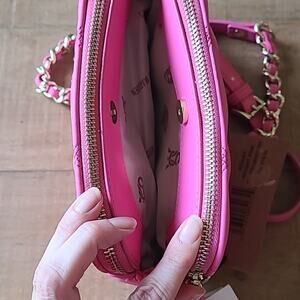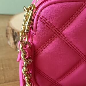 Steve Madden Bright Pink Quilted Crossbody Gold Chain NWT Small