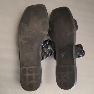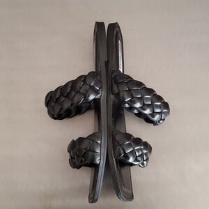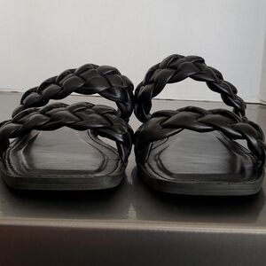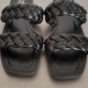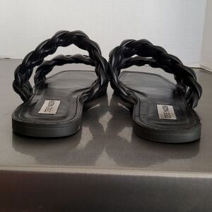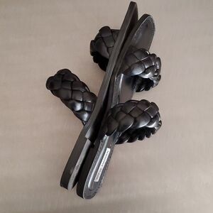 Steve Madden Brimm Black Puffy Double Braided Slide Flat Sandals Square Toe 10