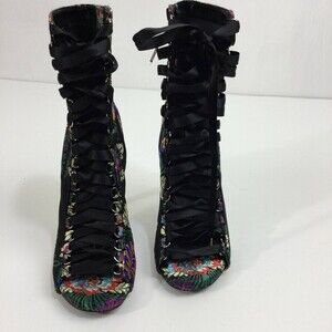 Steve Madden Brocade Floral Peep Toe Boots Shoes Lace Up Side Zipper Siz…