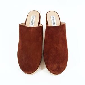 Steve Madden Brooklyn Platform Suede Leather Clogs 8.5M Boho Hippie Festival Brown