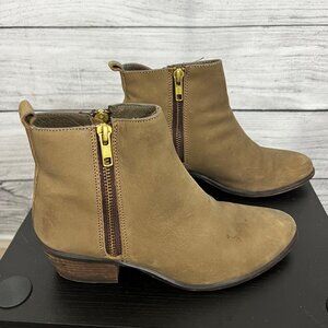 Steve Madden Brown Ankle Boots With Side Zippers & Wooden Heels, Size 6.5