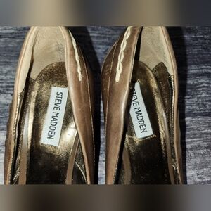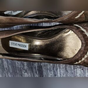 Steve Madden Brown Leather Ruched Round Toe Block Heel Pumps Comfortable Shoes