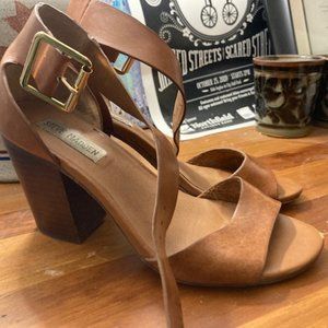 Steve Madden Brown Leather and Wood Heels with Buckle Size 6