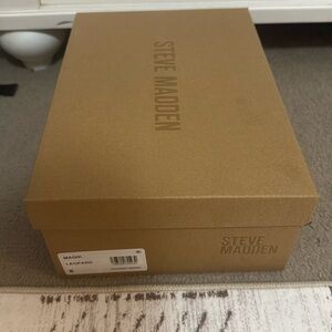 These Steve Madden slippers feature a chic leopard print design in brown tones, perfect for casual indoor wear. Crafted with a soft material, they offer comfort and style with their easy slip-on mule design. Ideal for lounging at home, these slippers combine fashion and function effortlessly.