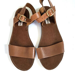 Stylish brown sandals. Adjustable ankle strap. Comfortable footbed. Perfect for casual wear.