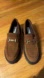 Elegant tan suede loafers with a sleek silver accent. Perfect for versatile styling.