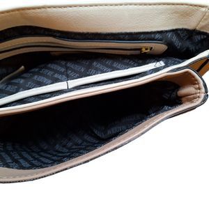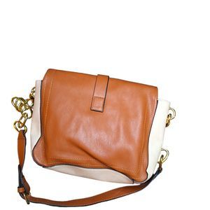 Steve Madden Brown & Taupe Fold Over Flap Shoulder Bag, Gold Chain Accents