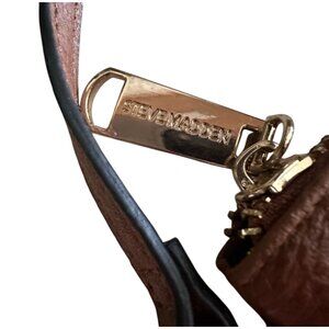 This stylish Steve Madden handbag is crafted from durable faux leather in a sophisticated brown tone, offering a chic accessory for daily use. Its compact size ensures easy handling, while the zip closure secures your essentials. The elegant design seamlessly blends with various outfits, enhancing your fashion statement.