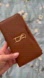 Stylish brown wallet featuring a gold logo. Perfect for everyday use.