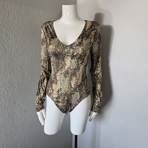 Steve Madden Brown and Cream Snake Print Bodysuit