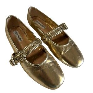 Steve Madden Burkett Gold Metallic Mary Jane Ballet Flats Womens SZ 8.5M