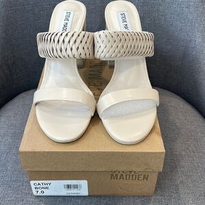 A stacked wood heel and cool complimentary leather straps make CATHY feel fun and new. Literally wear these heeled sandals with everything—look complete.