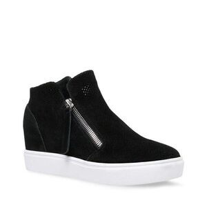 New Without Tags Steve Madden Caliber double zip suede sneakers, 8.5 black perforated suede wedges.