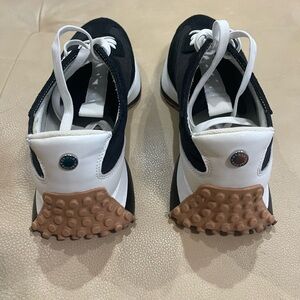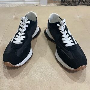Stylish black and white sneakers with a unique design. Perfect for casual wear.